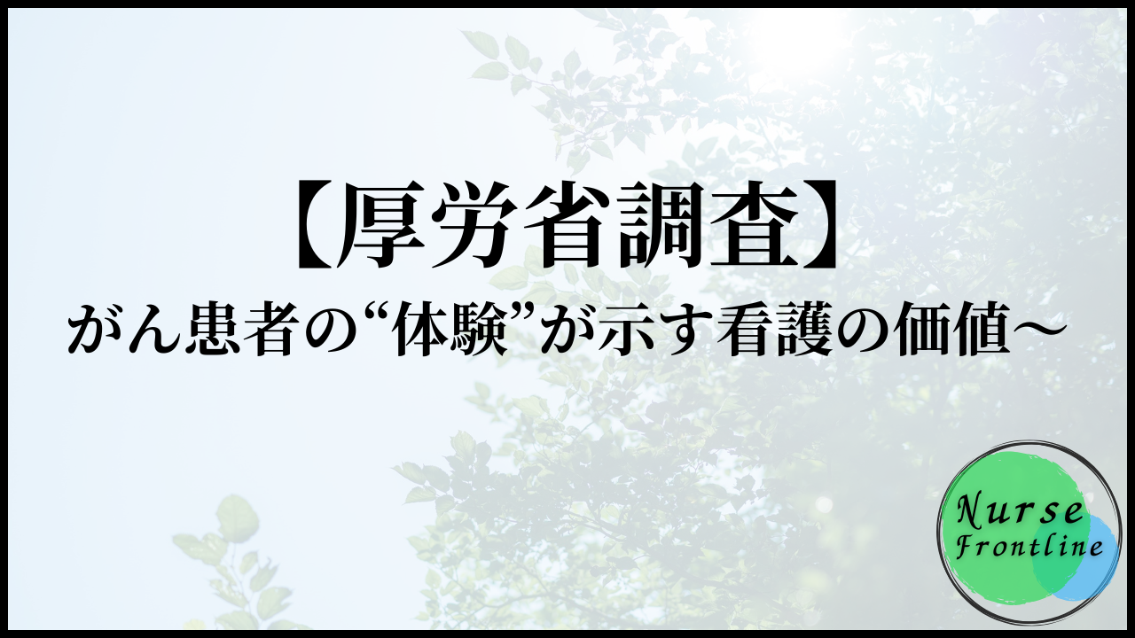 【厚労省調査】がん患者の“体験”が示す看護の価値〜