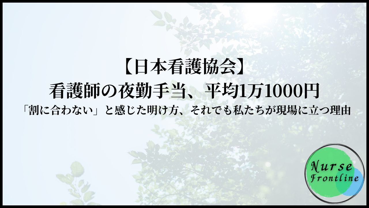 【日本看護協会】看護師の夜勤手当、平均1万1000円。|「割に合わない」と感じた明け方、それでも私たちが現場に立つ理由
