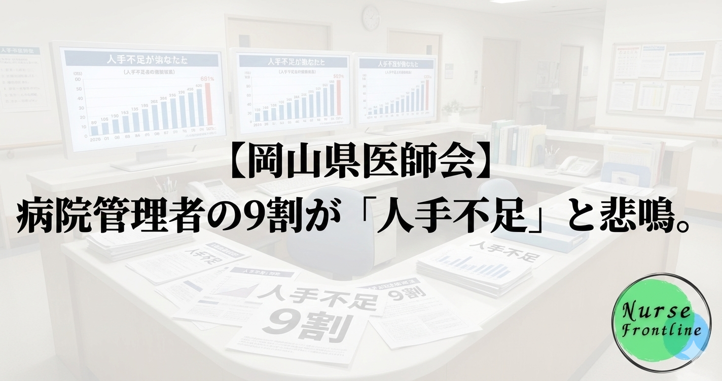ニュースの核心 岡山県医師会が初めて行った調査で、県内の病院・診療所管理者の**86.9%が「人材不足」を感じており、その不足職種のトップ(81.0%)が「看護師」であることが明らかになりました。さらに重要なのは、管理者がその原因を「給与や福利厚生への不満(60.8%)」**であると明確に認識している点です。