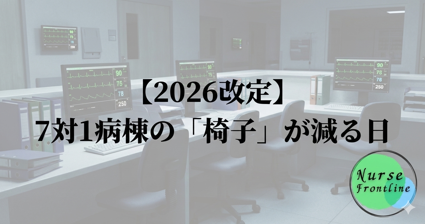 - 結論: これにより、入院直後の「超・急性期」以外は、7対1の点数が取れなくなる未来が既定路線となっています。ナースにとっては、患者さんが落ち着いた瞬間に転棟・転院調整に追われる、慌ただしい運用が加速するでしょう。